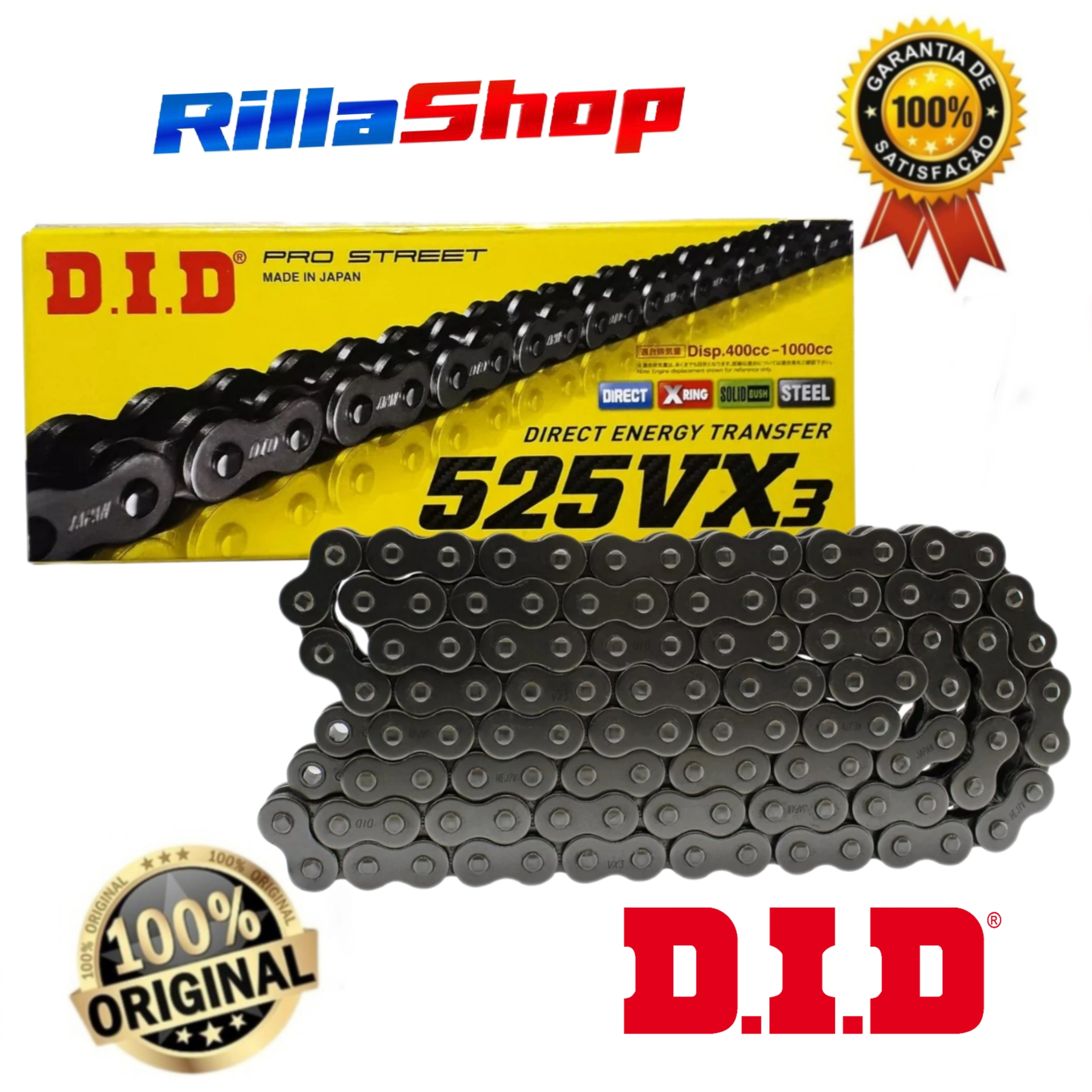 As correntes desta série utilizam retentores X-ring e elos com emenda de rebite, fabricadas sob severos controles de qualidade garantindo o melhor resultado em segurança e durabilidade, apresenta desempenho superior às correntes similares e garante satisfação, segurança e economia para os motociclistas.