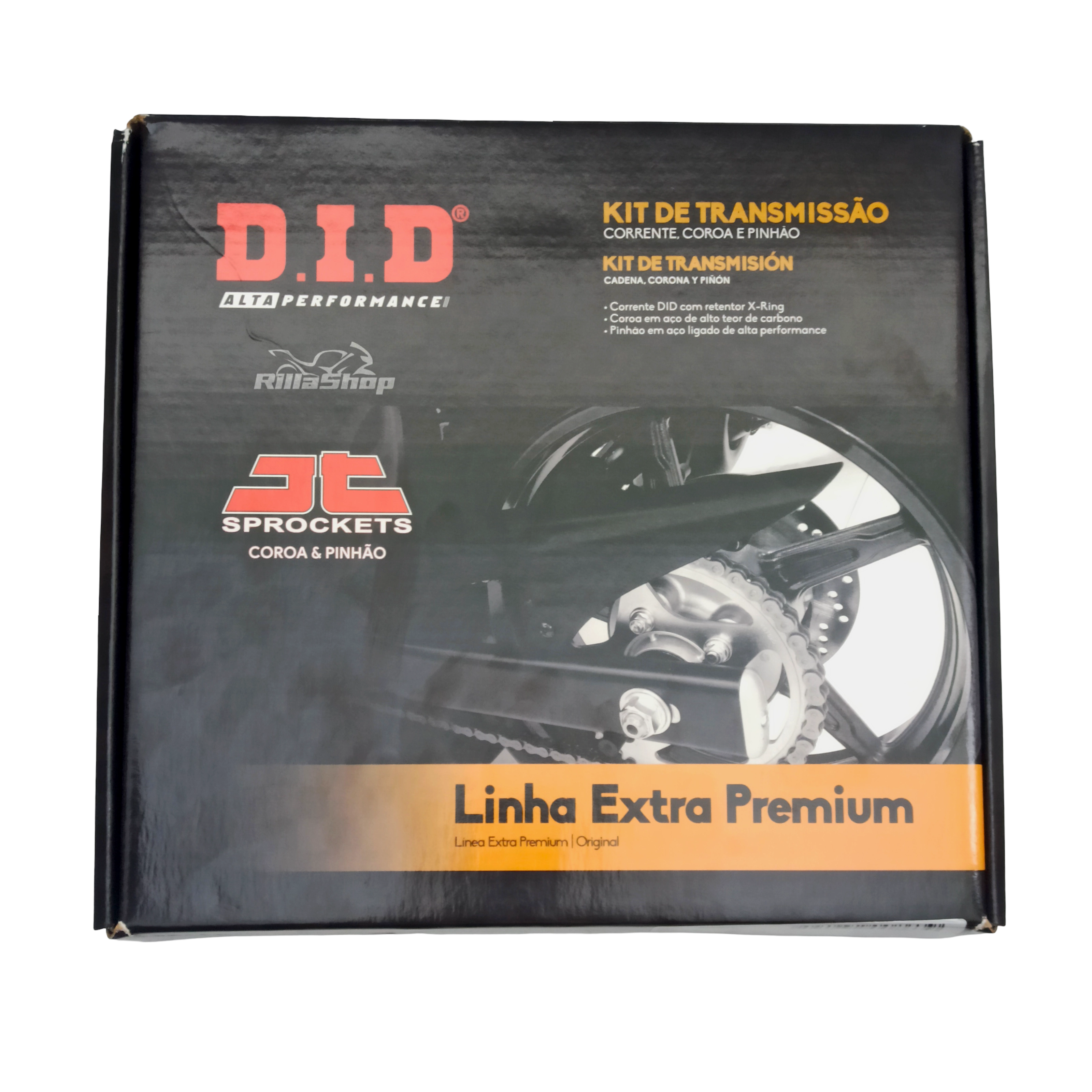 A linha D.I.D 525 ZVM-X2 GOLD apresenta placas douradas por toda sua extensão e é perfeita para atender as especificações de força e tecnologia, possuindo emenda tipo ZJ: O elo de emenda ZJ segue o mais alto grau de segurança e desempenho. Uma vez instalado, a corrente tem características de fechamento sem emendas, que garante menor nível de ruído, menor alongamento e principalmente maior vida útil. As emendas ZJ possuem placas de fechamento com interferência, ou seja, são montadas com prensagem. Uma vez na posição correta, a placa é travada pela rebitagem da extremidade dos pinos.